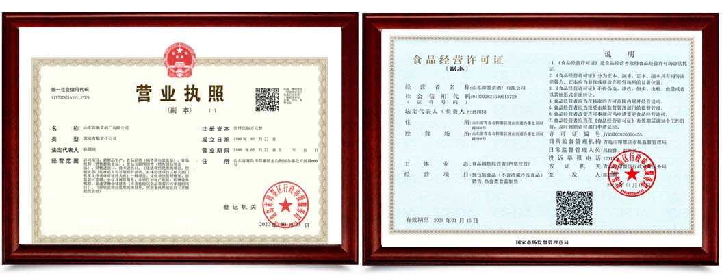 山東即墨黃酒廠有限公司傳承的即墨老酒“古遺六法”傳統(tǒng)釀造工藝被列為省級(jí)非物質(zhì)文化遺產(chǎn),是該項(xiàng)歷史非物質(zhì)文化遺產(chǎn)的實(shí)際傳承人,于2006年被國(guó)家商務(wù)部授予“中華老字號(hào)”。
